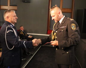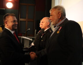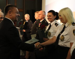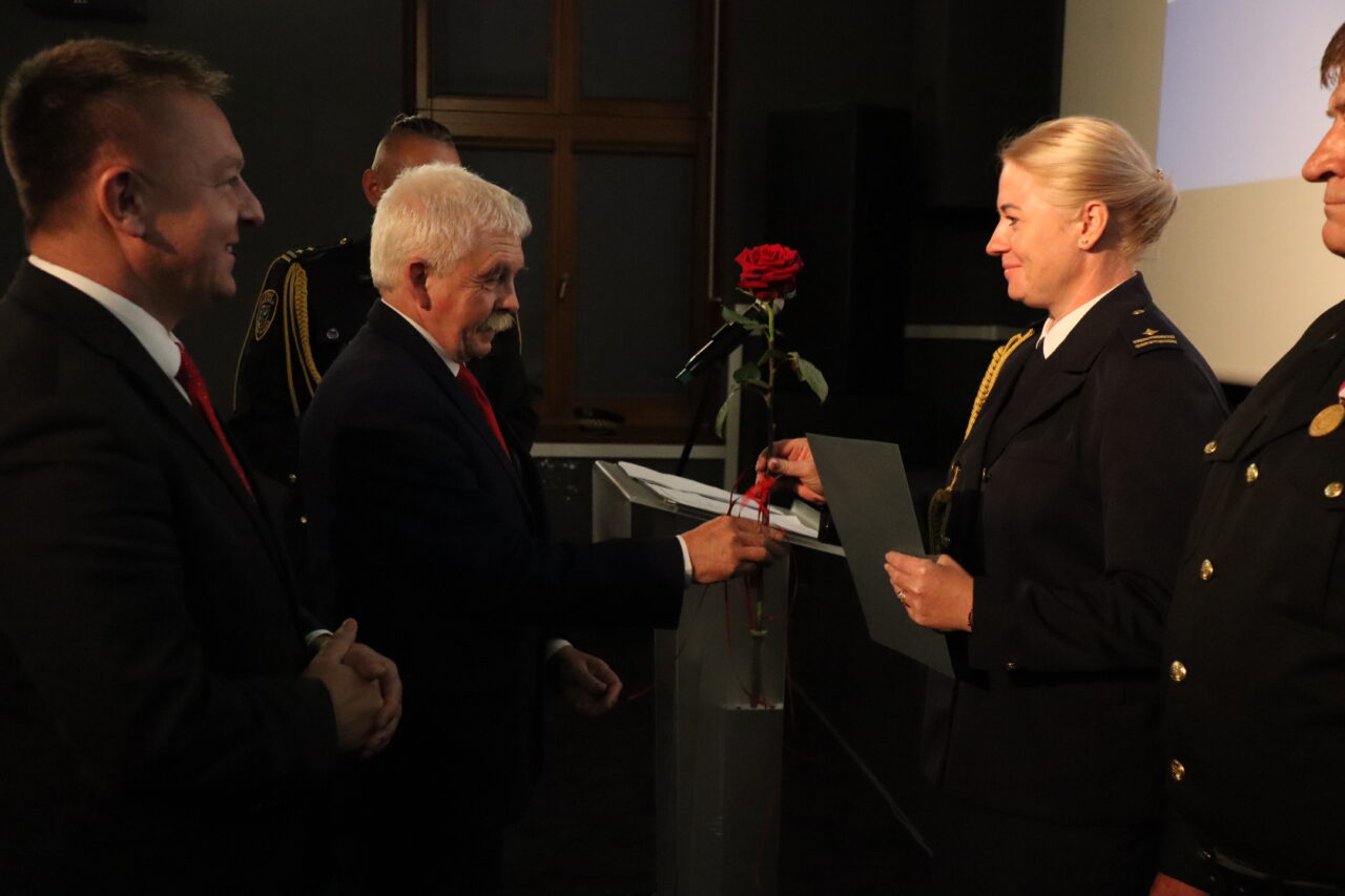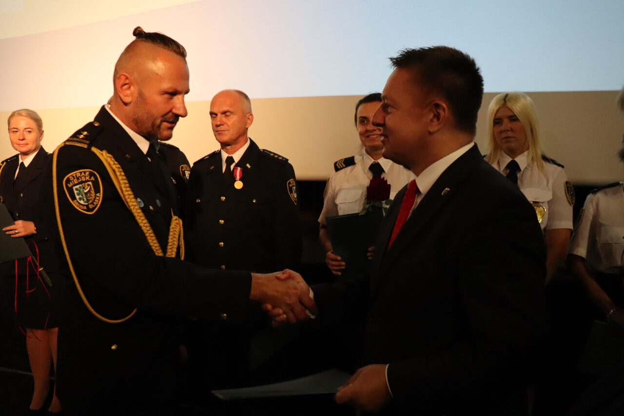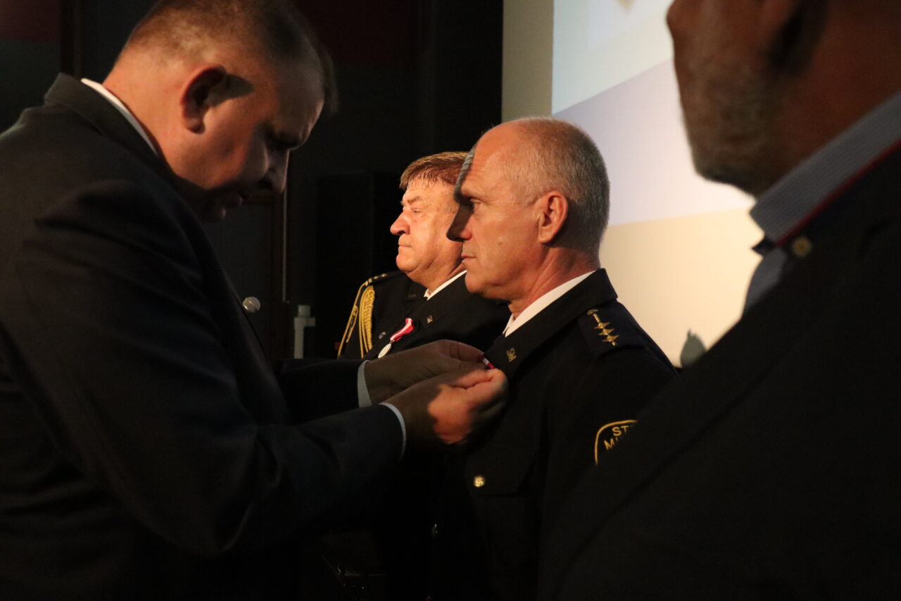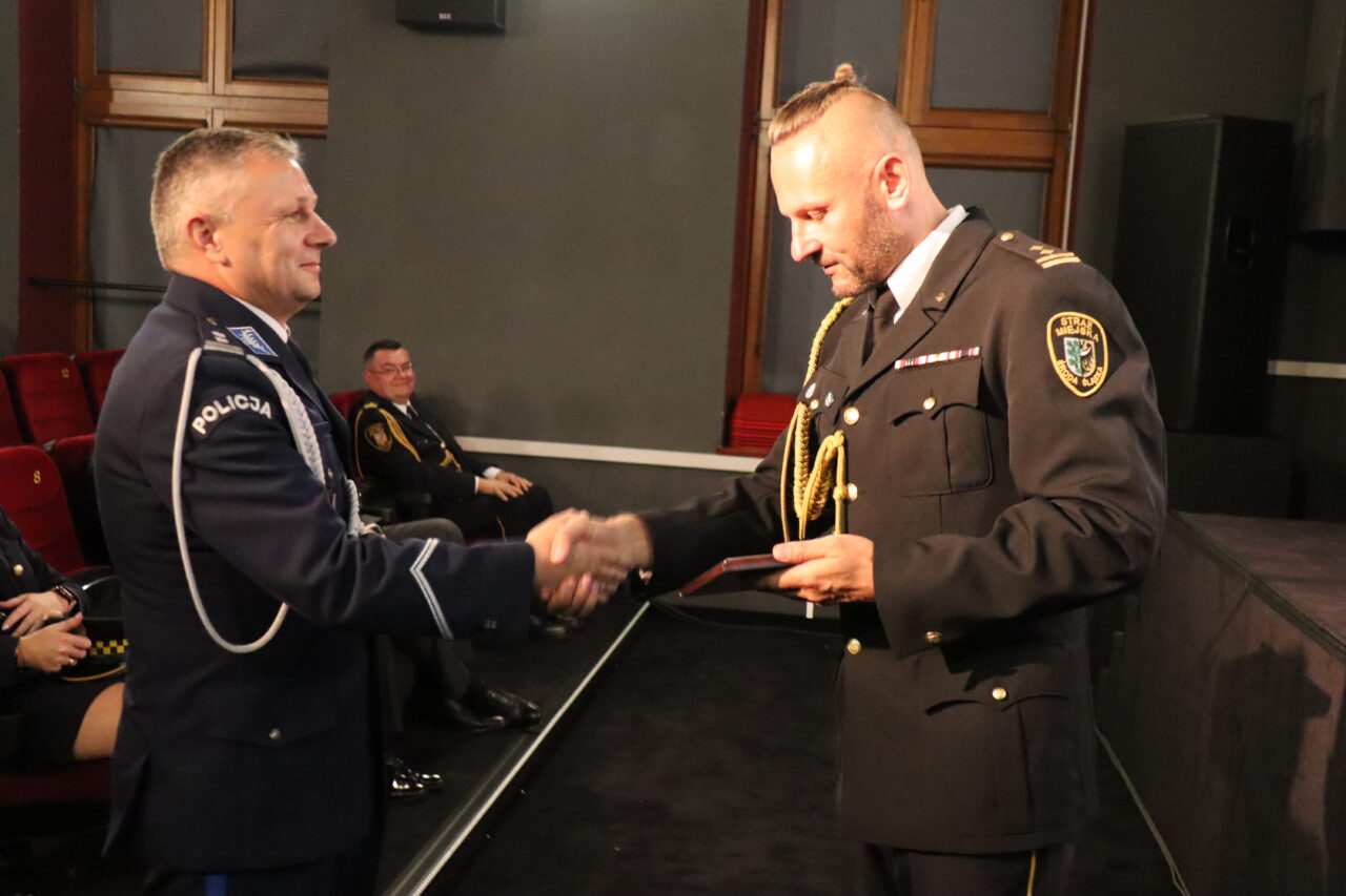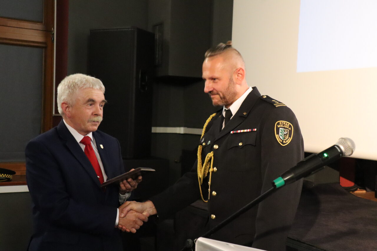 Damian Mrozek, doradca wojewody dolnośląskiego ds. kontaktów z organizacjami pozarządowymi i kombatanckimi razem z burmistrzem Adamem Rucińskim wręczyli odznaczenia trzem średzkim funkcjonariuszom z najdłuższym stażem pracy w SM – „Złoty Medal za Długoletnią Służbę” nadany przez Prezydenta RP Andrzeja Dudę. Tym tytułem uhonorowani zostali emerytowany strażnik st. insp. Zbigniew Krężel, st. insp. Władysław Wasilewski oraz st. insp. Marek Koziarski.