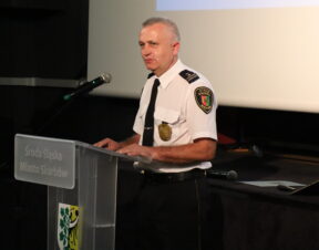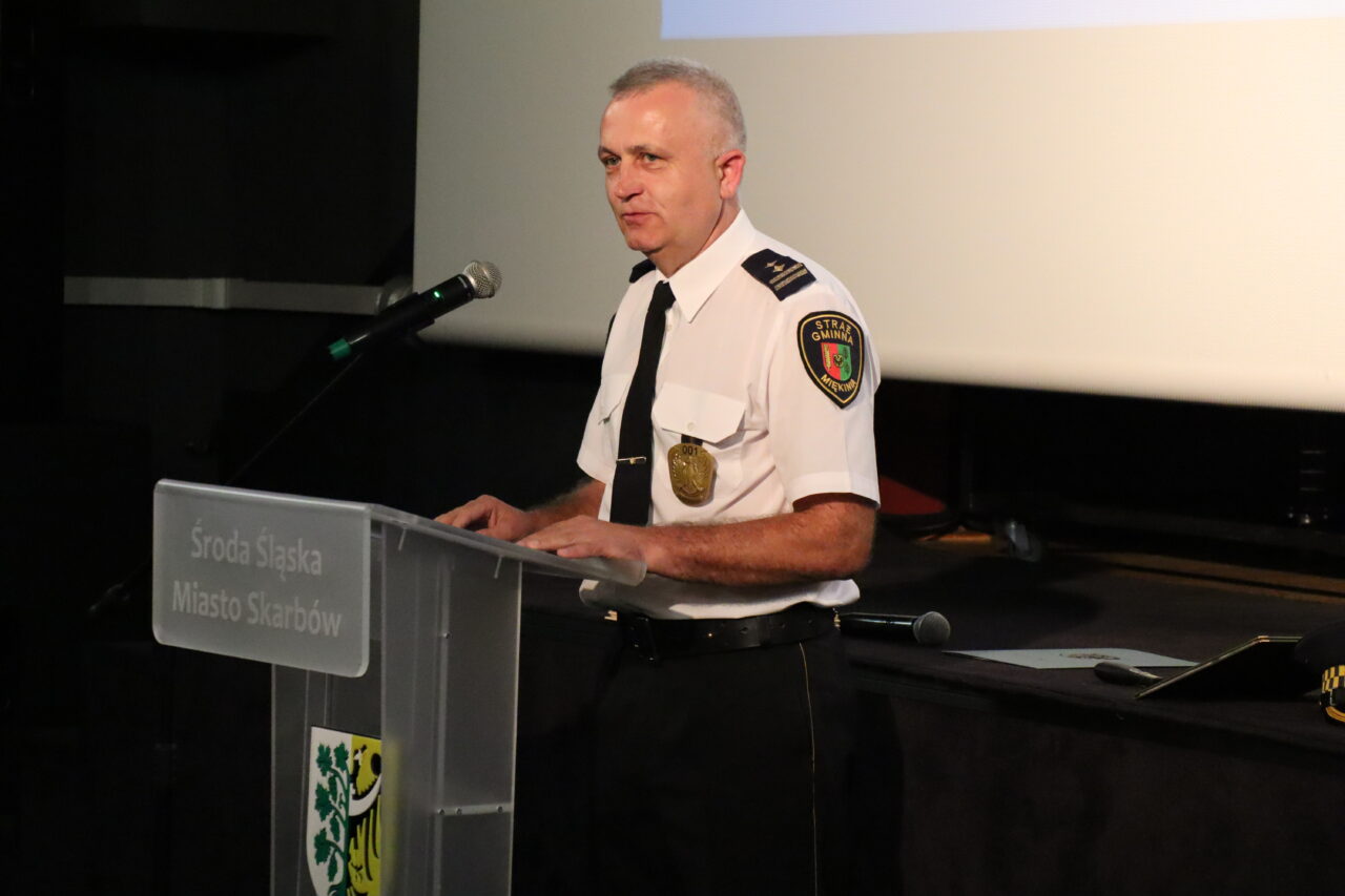Przybyłych gości powitał Ryszard Czerwiec, komendant Straży Miejskiej w Środzie Śląskiej. W swoim przemówieniu podkreślał zasadność i istotę działań średzkich strażników miejskich, zadania i wyzwania, jakie przed nimi stają i problemy, z jakimi się borykają. Dziękował za wsparcie burmistrzowi Adamowi Rucińskiemu oraz radnym Rady Miejskiej obecnej i poprzednich kadencji. Komendant Czerwiec przedstawił też krótką prezentację, obrazującą w skrócie 30-letnią historię średzkiej formacji Straży Miejskiej i najważniejsze fakty z ostatnich lat jej działania.