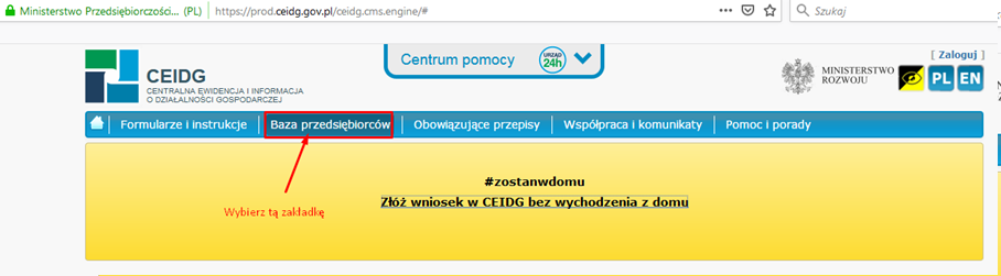 Krok 2. Wejdź do zakładki „Baza przedsiębiorców”