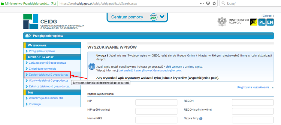 Krok 1. Zaloguj się na stronę www.ceidg.gov.pl