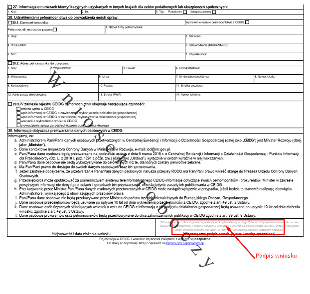 Krok 9. Należy wydrukować dokument i podpisać się na jego ostatniej stronie: