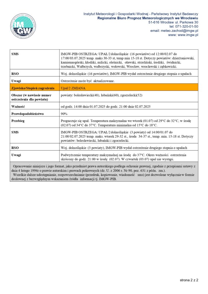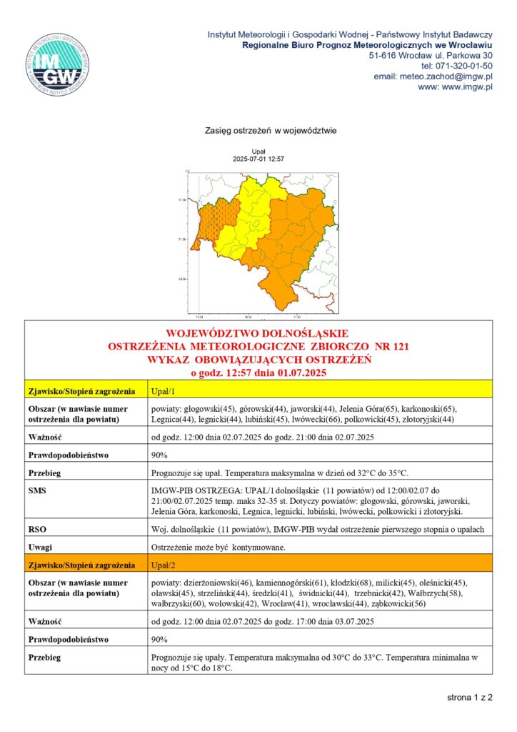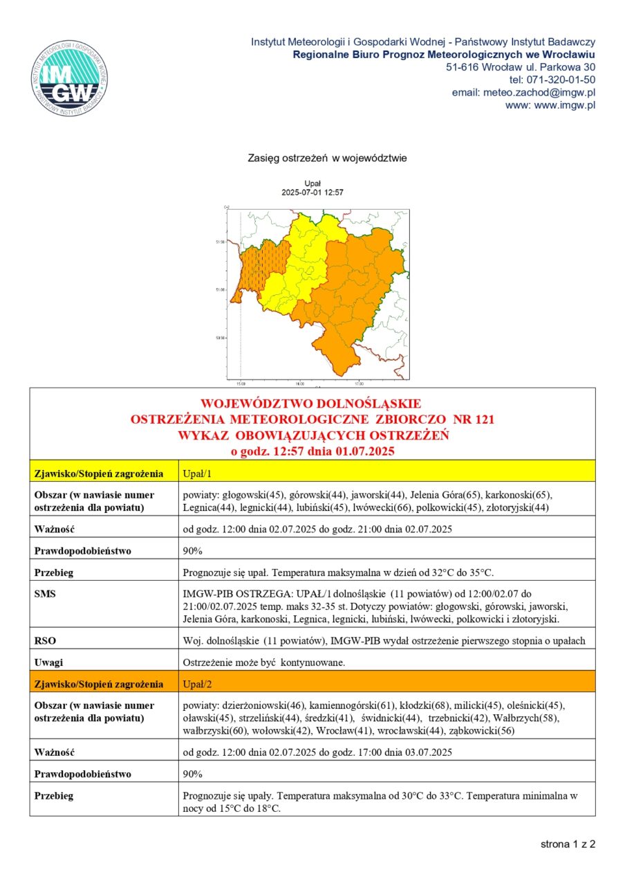 Instytut Meteorologii i Gospodarki Wodnej – Państwowy Instytut Badawczy prognozuje na najbliższe dni upały kwalifikujące się na ostrzeżenie 1. i 2. stopnia. Wskazanie na termometrach będzie przekraczać 30°C, a wysoka temperatura utrzymywać się będzie również w godzinach wieczornych.