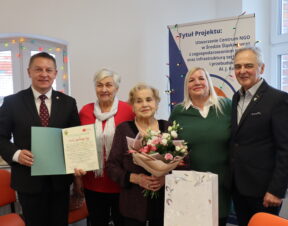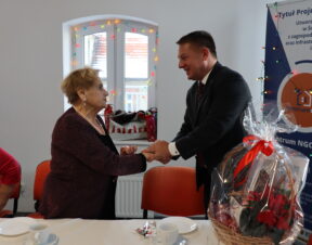 Pani Jadwiga Jac była prezesem Klubu Seniora przez 18 lat – od 2004 roku. Przez te lata zorganizowała wiele przedsięwzięć spotkań, wyjazdów i ważnych akcji w Klubie Seniora. Burmistrz Adam Ruciński wraz z wiceprzewodniczącym Rady Miejskiej Mieczysławem Łabatczykiem podsumowali imponujący okres wytężonej działalności społecznej Pani Jadwigi i podziękowali za jej trud, zaangażowanie i operatywność, a następnie wręczyli okolicznościowy upominek.