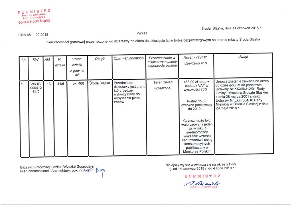 na okres do dziesięciu lat w trybie bezprzetargowym na terenie miasta Środa Śląska