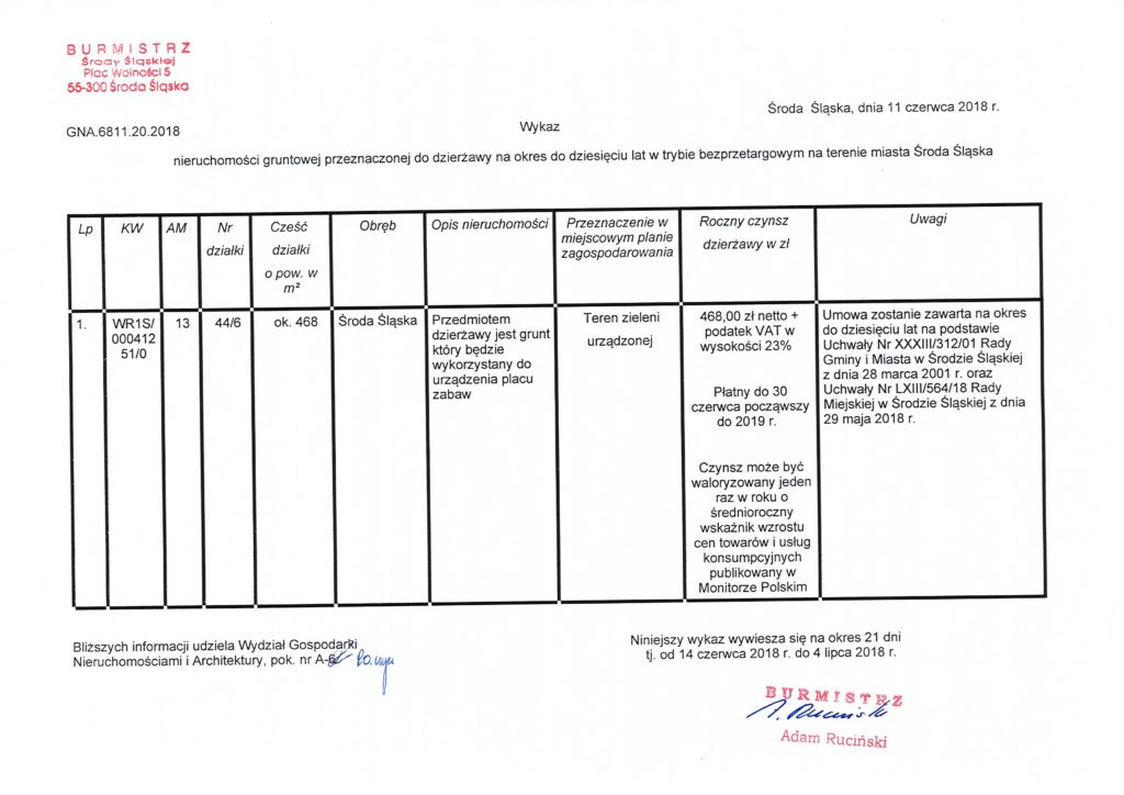 na okres do dziesięciu lat w trybie bezprzetargowym na terenie miasta Środa Śląska.