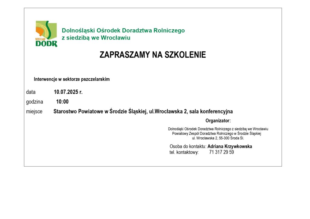 Zaproszenie na szkolenie pn. „Interwencje w sektorze pszczelarskim”