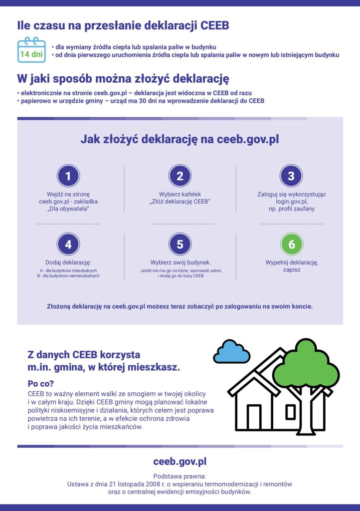 Deklarację w Centralnej Ewidencji Emisyjności Budynków składamy od 1 lipca 2021 r. Obowiązek składania deklaracji wynika z ustawy z 21 listopada 2008 r. o wspieraniu termomodernizacji i remontów.