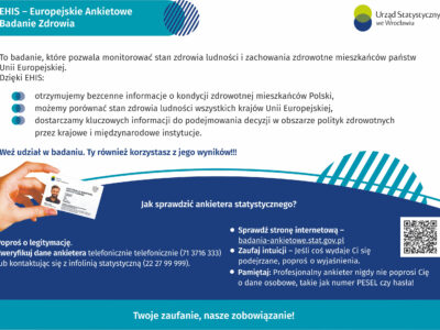 Czytaj więcejInformujemy, że na terenie naszej Gminy prowadzone jest w terminie 1.09. – 31.12.1015 r. Europejskie Ankietowe Badanie Zdrowia (EHIS). Jest ono prowadzone co 6 lat we wszystkich krajach Unii Europejskiej, po to, aby można było porównywać wyniki o stanie zdrowia mieszkańców poszczególnych państw. Jesteśmy bardzo ciekawi, czy Polacy są zdrowsi…